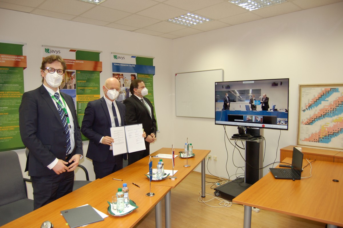 The meeting and signing of the agreement took place online, on 23rd March, 2021 at the premises of JAVYS in Bratislava and the IAEA in Vienna. Participants were: Michail Chudakov, IAEA Deputy Director General and Head of the Department of Nuclear Energy, Pavol Štuller, Chairman of the Board of Directors and CEO of JAVYS, Peter Mišík, Extraordinary and Plenipotentiary Ambassador of Slovakia in Austria and Marta Žiaková, Chairman of the Slovak Nuclear Regulatory Authority.