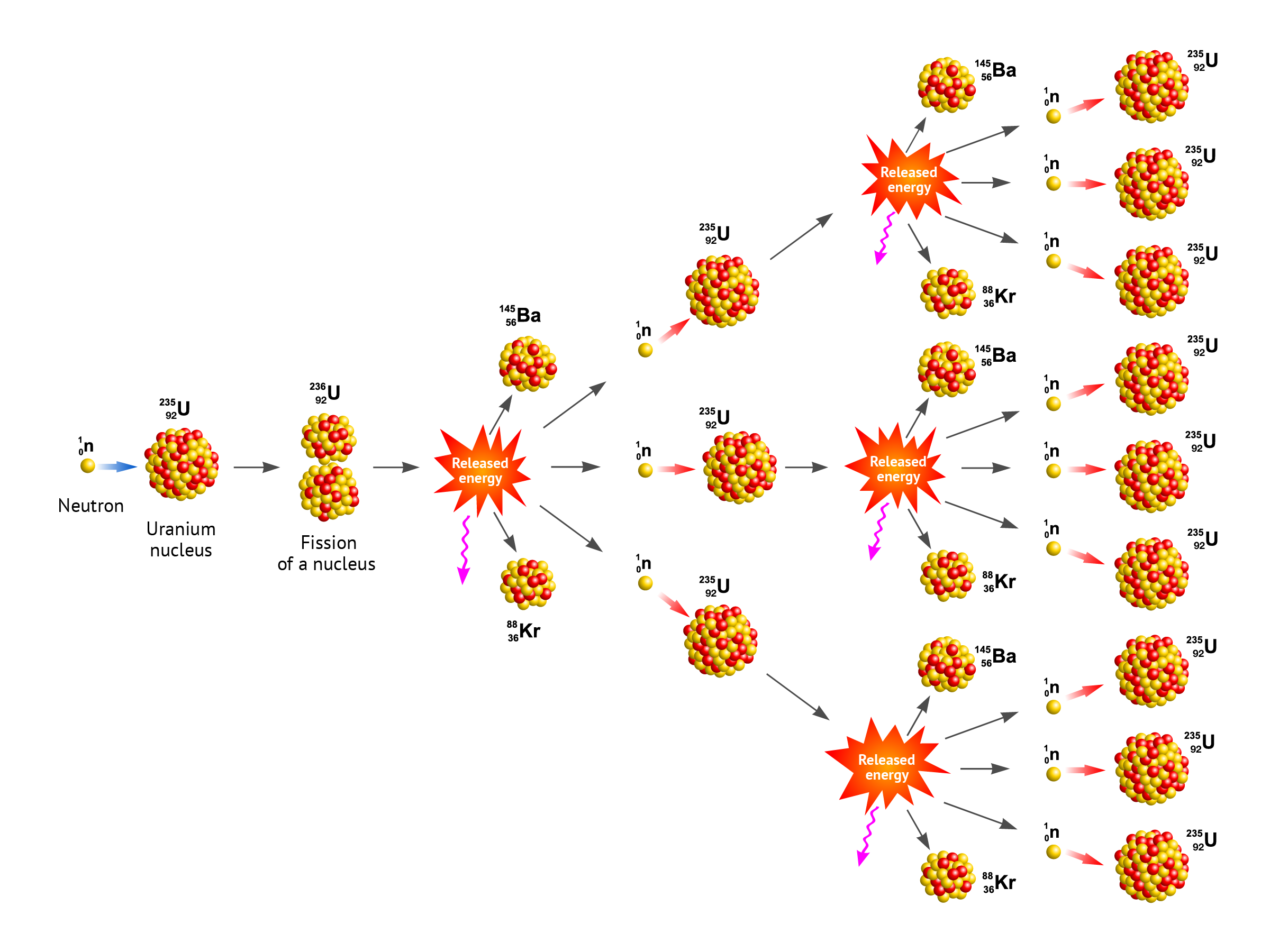 Štiepna reťazová reakcia je proces, pri ktorom neutróny uvoľnené pri štiepení jadra uránu-235 vyvolávajú štiepenie ďalších jadier uránu. Neutróny vznikajúce pri týchto štiepeniach následne spôsobujú ďalšie štiepenia, čím vzniká reťazový dej.